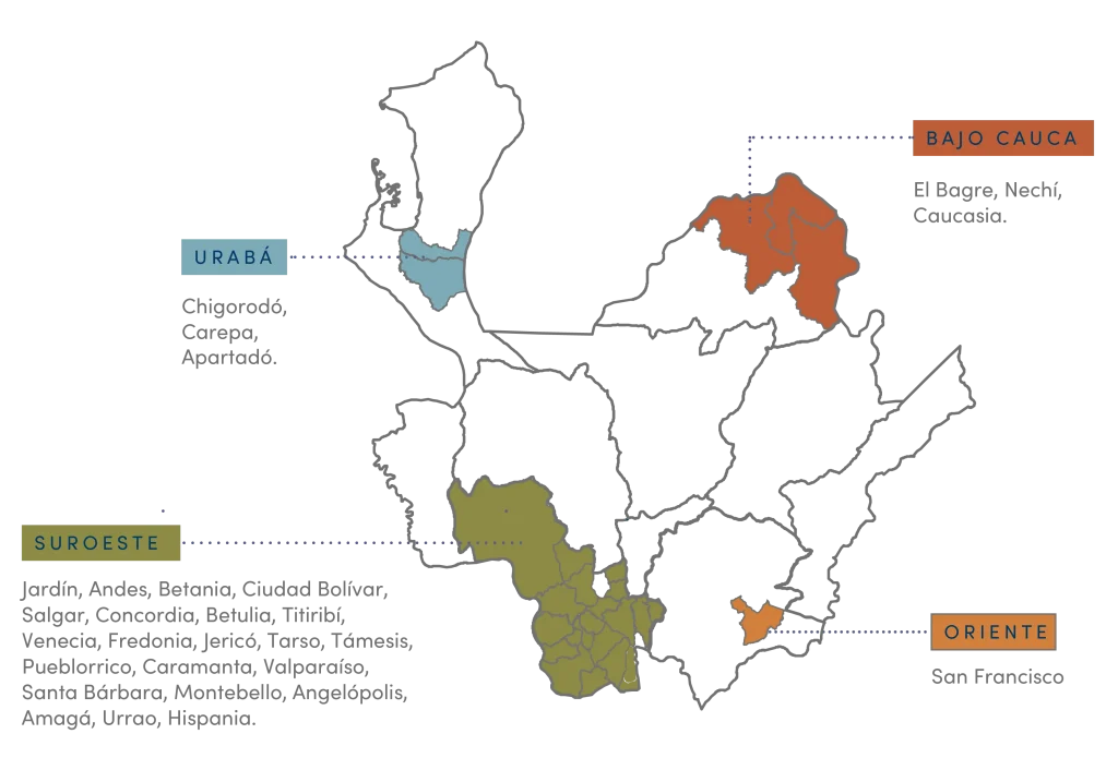 El fortalecimiento de la educación rural inició en el municipio de Jardín y gracias a esta enriquecedora experiencia diferentes municipios se han sumado a la iniciativa de ampliar sus horizontes, actualmente hacemos presencia en 29 municipios del Suroeste, Urabá, Bajo Cauca y Oriente Antioqueño.